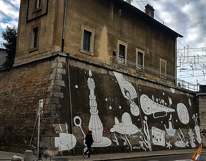 Une fresque de 1000 m² en plein Centre de Strasbourg, rue de la Vignette. Site de l’artiste : http://www.dan23.com/