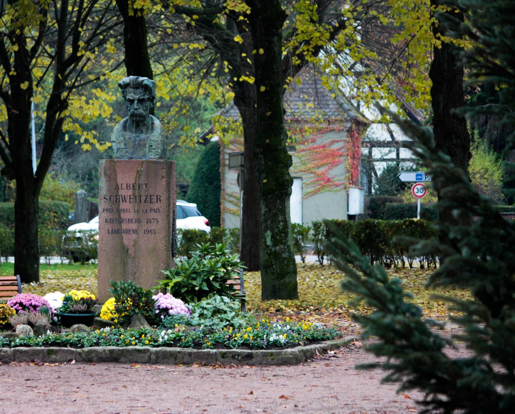 En effet, Kaysersberg est la cité natale du Docteur Albert Schweitzer. « Je suis né le 14 janvier 1875 à Kaysersberg, petite cité du Haut-Rhin, dans la maison portant tourelle, sis à gauche en amont de la sortie de la localité. Mon père y était pasteur et instituteur de la petite paroisse protestante … » C’est ainsi que commence son livre. Albert Schweitzer grandit à Gunsbach où la famille s’installa après sa naissance. Théologien, philosophe, musicien, médecin Schweitzer s’embarqua pour le Gabon en 1913 et y construisit un hôpital à Lambaréné. Prix Nobel de la Paix en 1954, Albert Schweitzer reste l’une des figures les plus marquantes et l’Alsacien le plus célèbre du 20ème siècle.