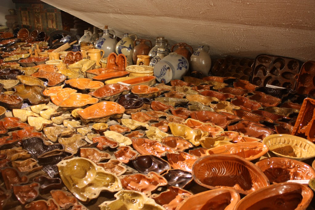 - Une magnifique série de plus de 700 moules en terre vernissée pour la cuisson des kouglofs mais aussi de gâteaux en forme d’agneau pascal, de poupon,de cigognes, de fleur de lys, de cœur, d’écrevisse, de canard, de grappe de raisin…